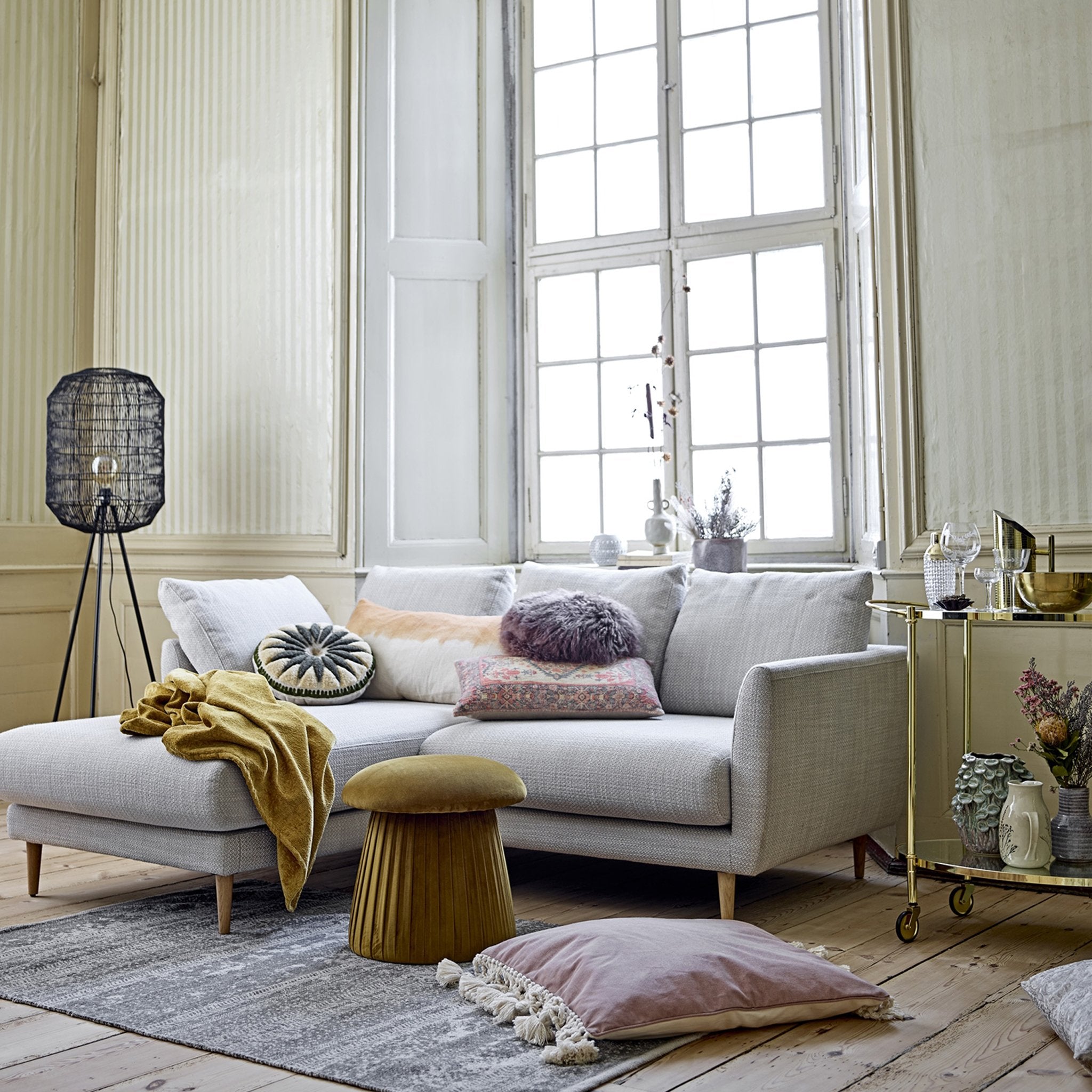 Produzido em carvalho natural e tecido, o Sofá Pansy insere-se no estilo NORDIC. Bastante versátil, pois adapta-se a diversos ambientes. É ideal para uma sala de estar apresentando um toque suave devido ao seu material.